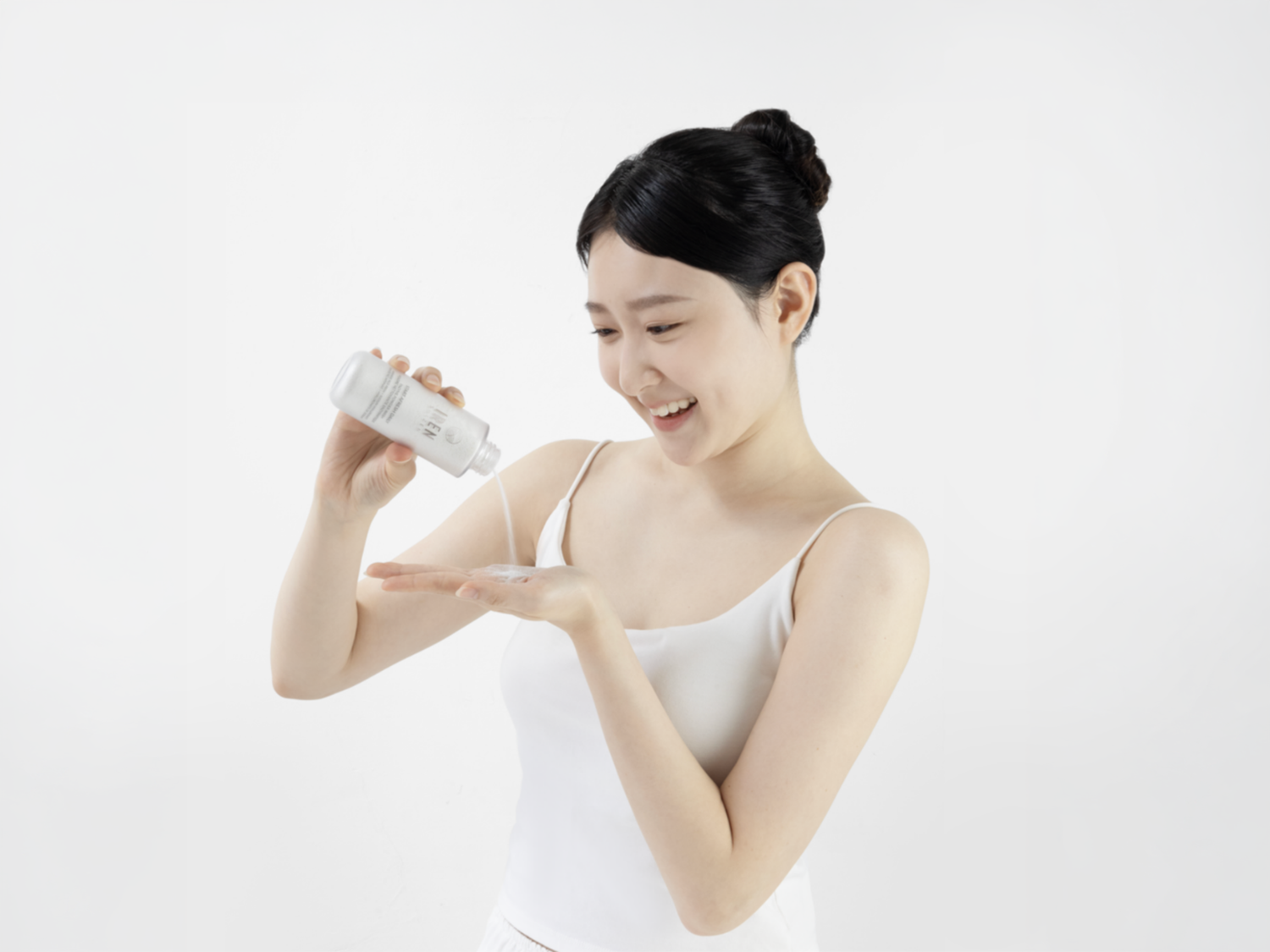Step 1. Wet your face with lukewarm water, and dispense a small coin amount of the powder on wet hands.