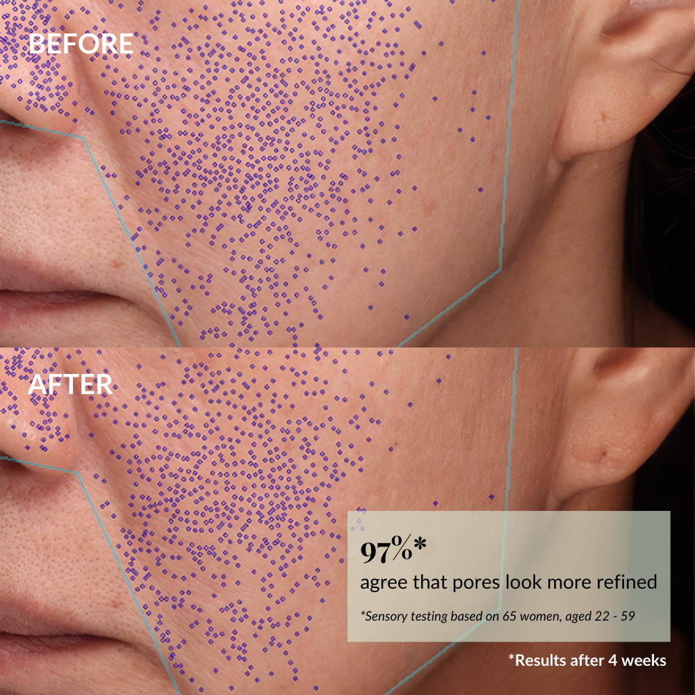 97% agree pore size is minimized and pores look more refined in 4 weeks.